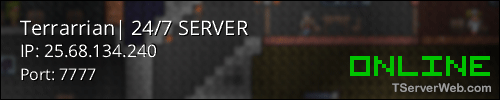 <a href="https://www.tserverweb.com/terraria-server/4803-terrarrian-247-server/" target="_blank" ><img src="https://www.tserverweb.com/share-4803.png" alt="" /></a>