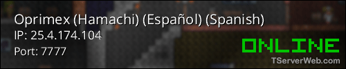 <a href="https://www.tserverweb.com/terraria-server/5190-oprimex-hamachi-espantildeol-spanish/" target="_blank" ><img src="https://www.tserverweb.com/share-5190.png" alt="" /></a>
