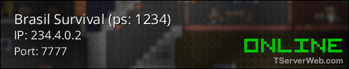 <a href="https://www.tserverweb.com/terraria-server/5897-brasil-survival-ps-1234/" target="_blank" ><img src="https://www.tserverweb.com/share-5897.png" alt="" /></a>