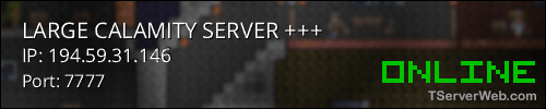 <a href="https://www.tserverweb.com/terraria-server/9382-leafos-gaming---calamity/" target="_blank" ><img src="https://www.tserverweb.com/share-9382.png" alt="" /></a>
